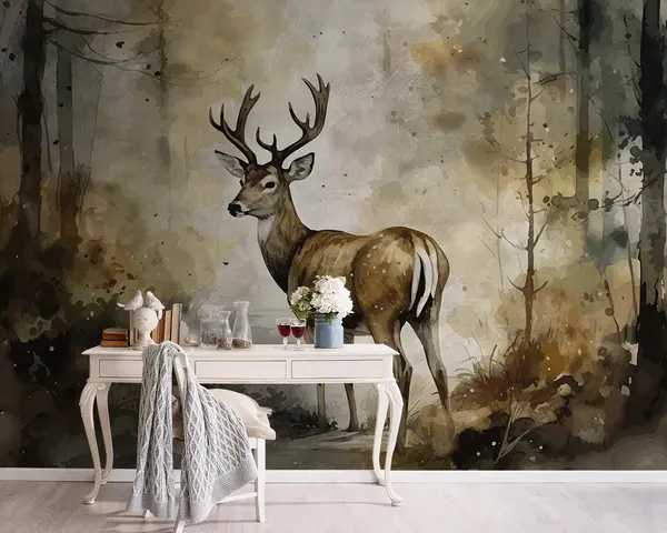 Fototapety Ručně malovaná jelen v lese Č. u95410