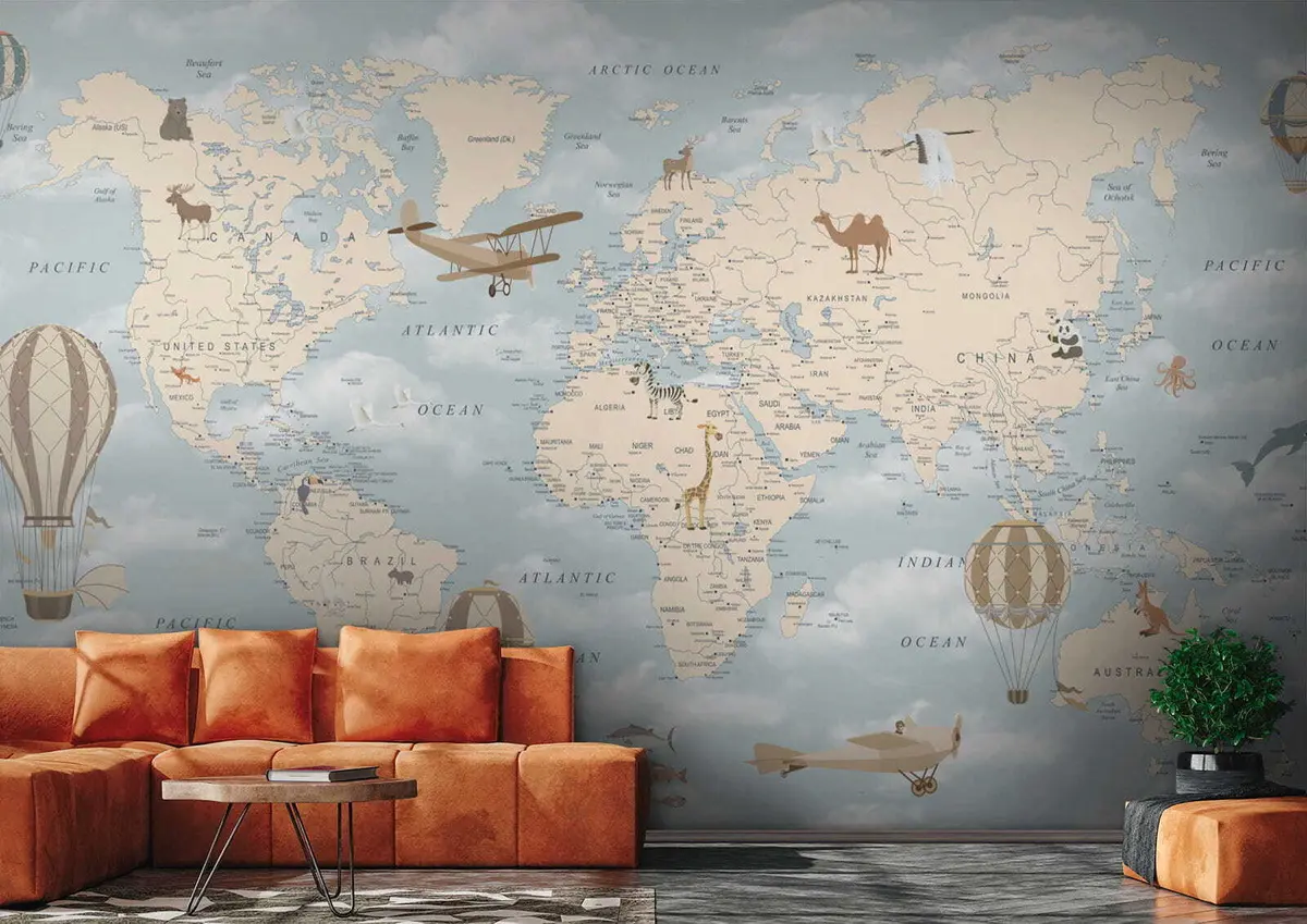 Fototapety Dětská mapa světa s letadly Č. u60135