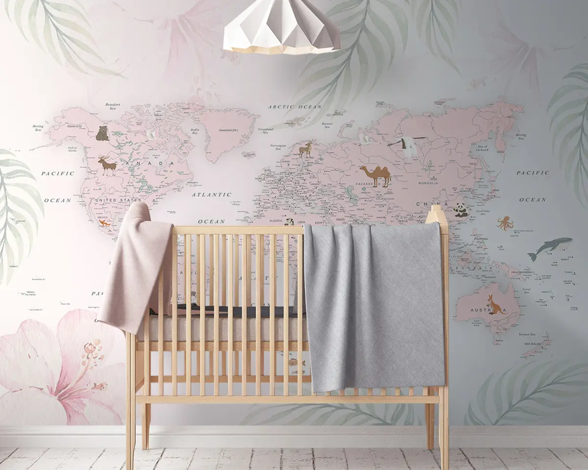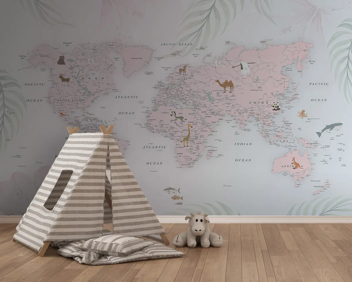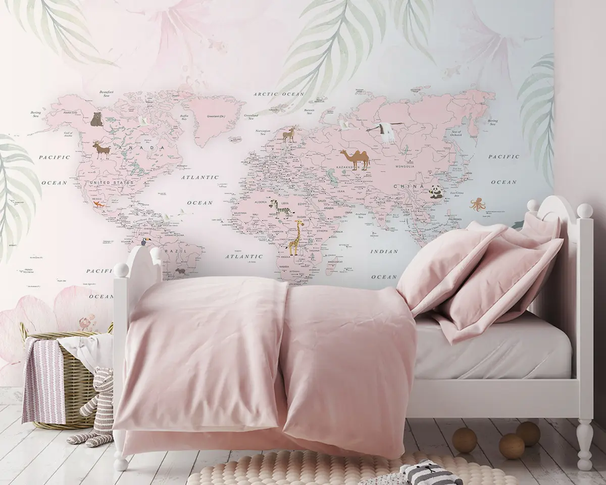 Fototapety Mapa světa pro dívky v růžovém stylu Č. u79832
