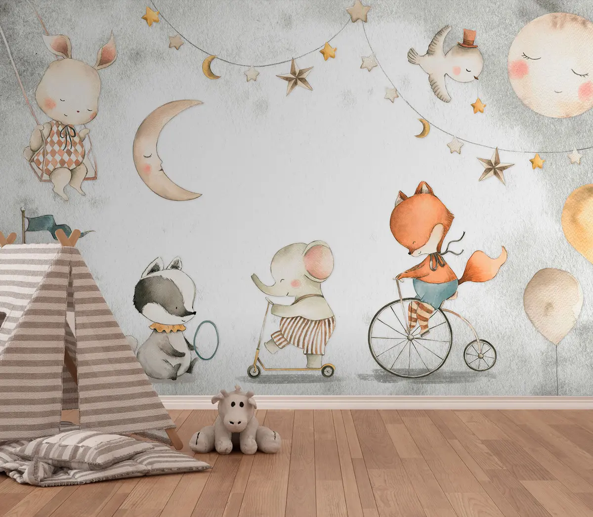 Fototapety Lesní zvířata slon, liška, jezevec a králík Č. u96075