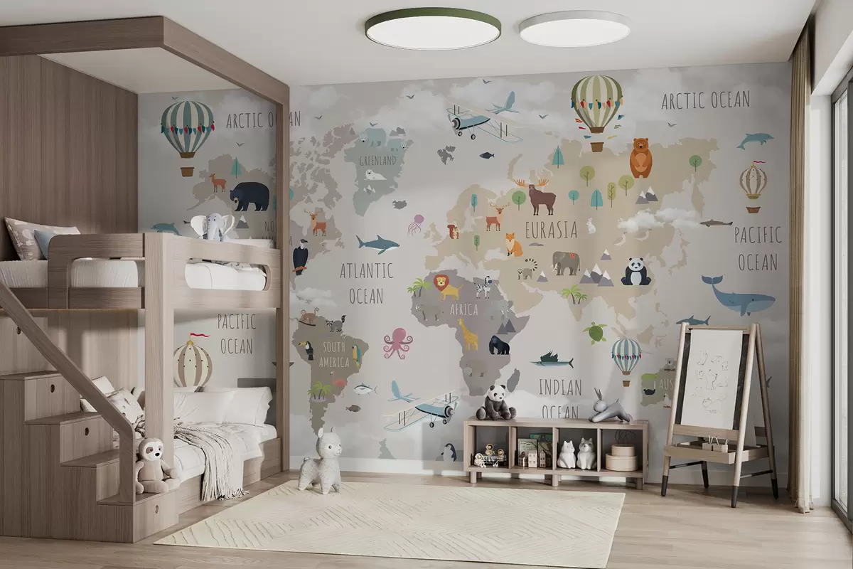Fototapety Mapa světa se zvířaty a balónky Č. u96461