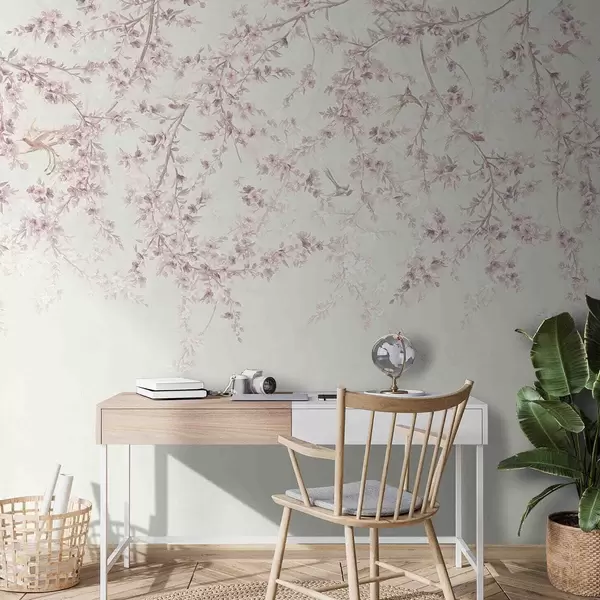 Fototapety Květinové větve a ptáci v mléčných barvách Č. u58941v2