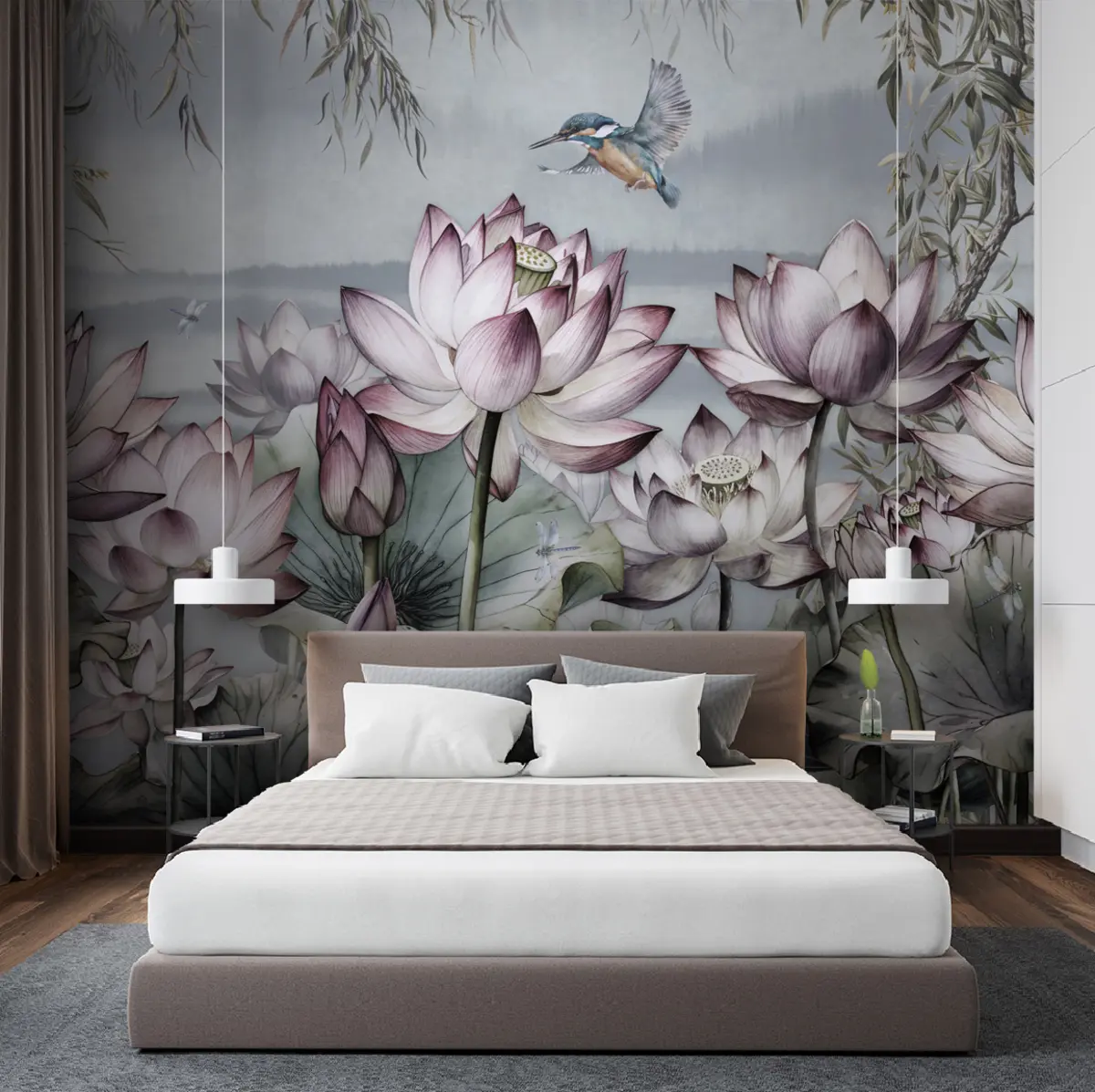 Fototapety Krajina lotosový květ s ledňáčkem Č. u95397
