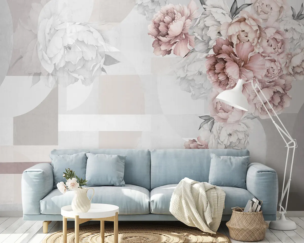 Fototapety Akvarel pivoňky v růžové barvě s geometrickým pozadím Č. u95855