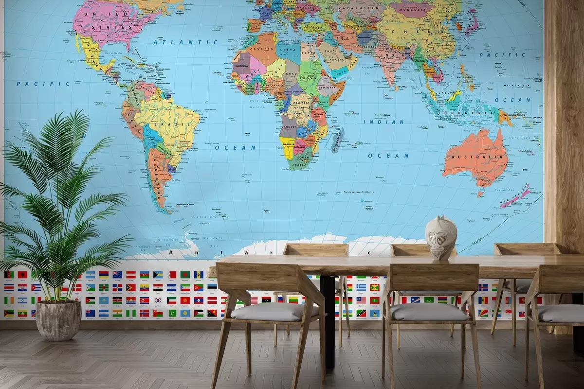 Fototapety Mapa světa s vlajkami zemí Č. u60137