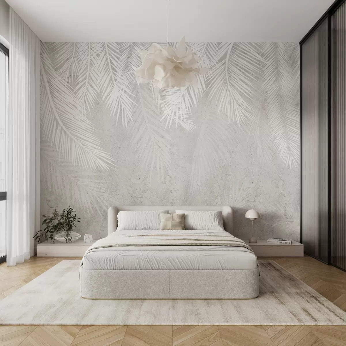 Fototapety Bílé křehké palmové listy s texturou grunge Č. u94286