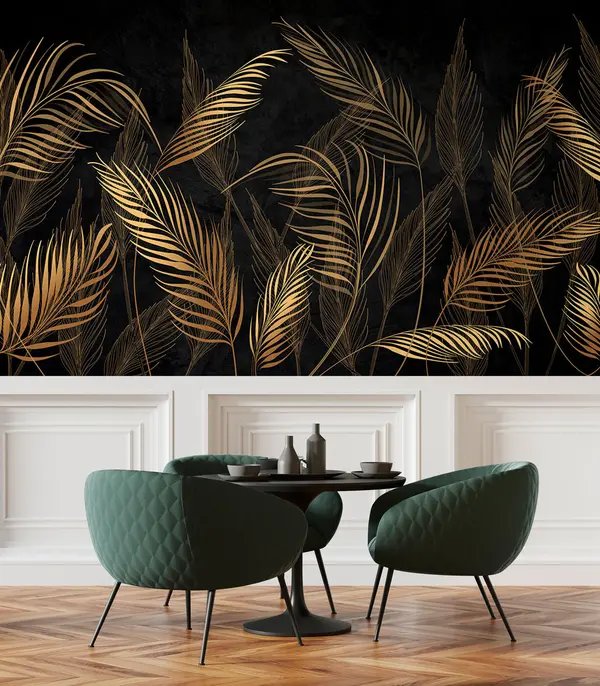 Fototapety Palmové listy na černém pozadí zdi Č. u96318