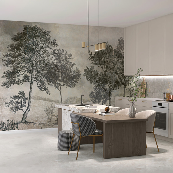 Fototapety Fantastické lineární stromy s bujnými korunami v elegantních tmavě smaragdových tónech