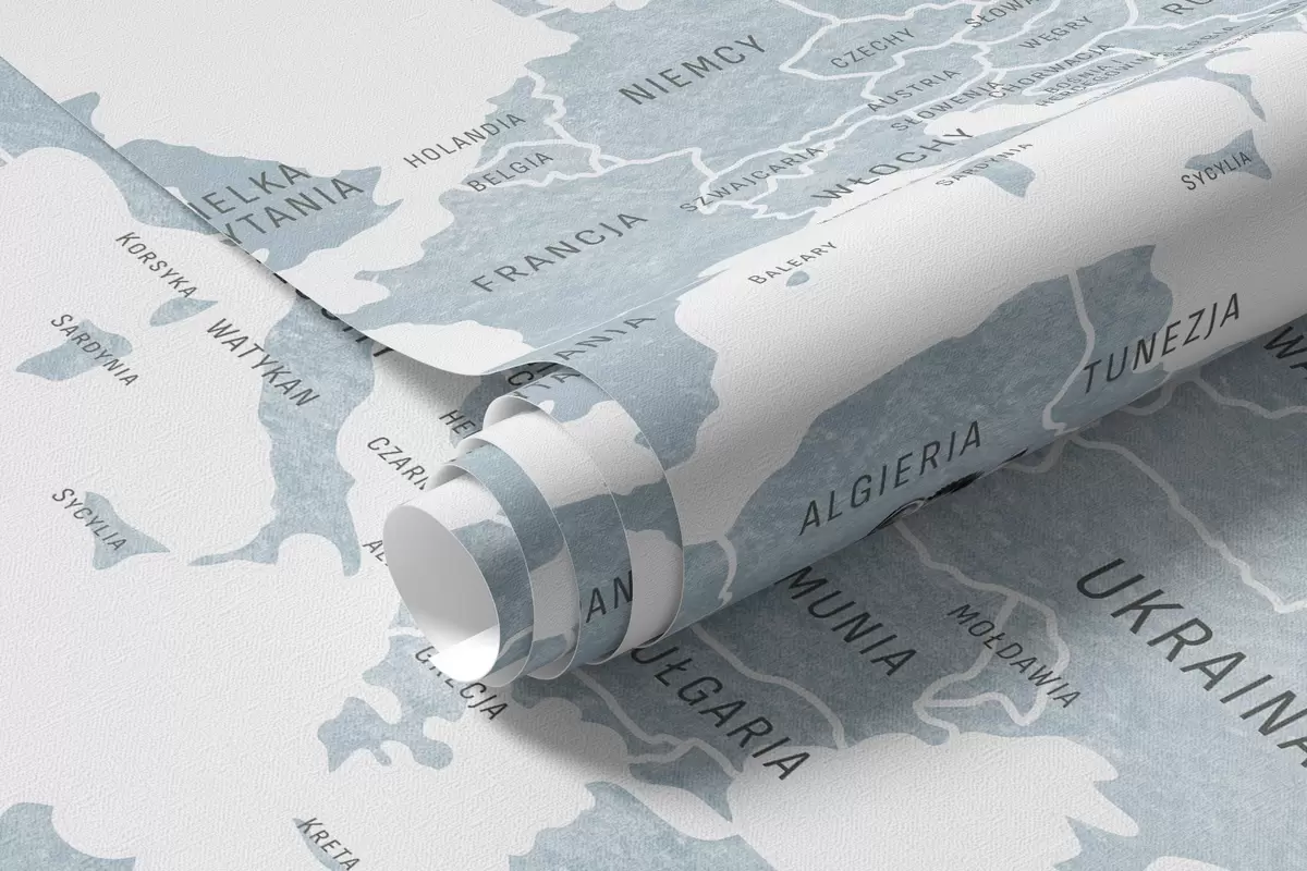 Fototapety Dětská mapa v akvarelovém stylu se zvířaty a horkovzdušnými balóny. Polský jazyk. Modrá barva. Č. c00001plv1
