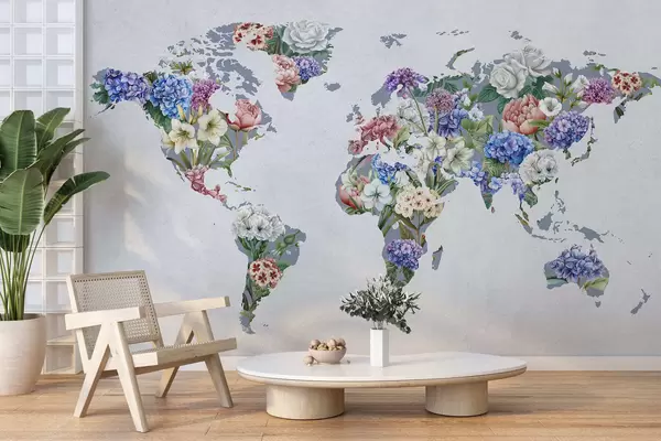 Fototapety Barevná mapa světa vytvořená z nejrůznějších zářivých květin Č. c00006