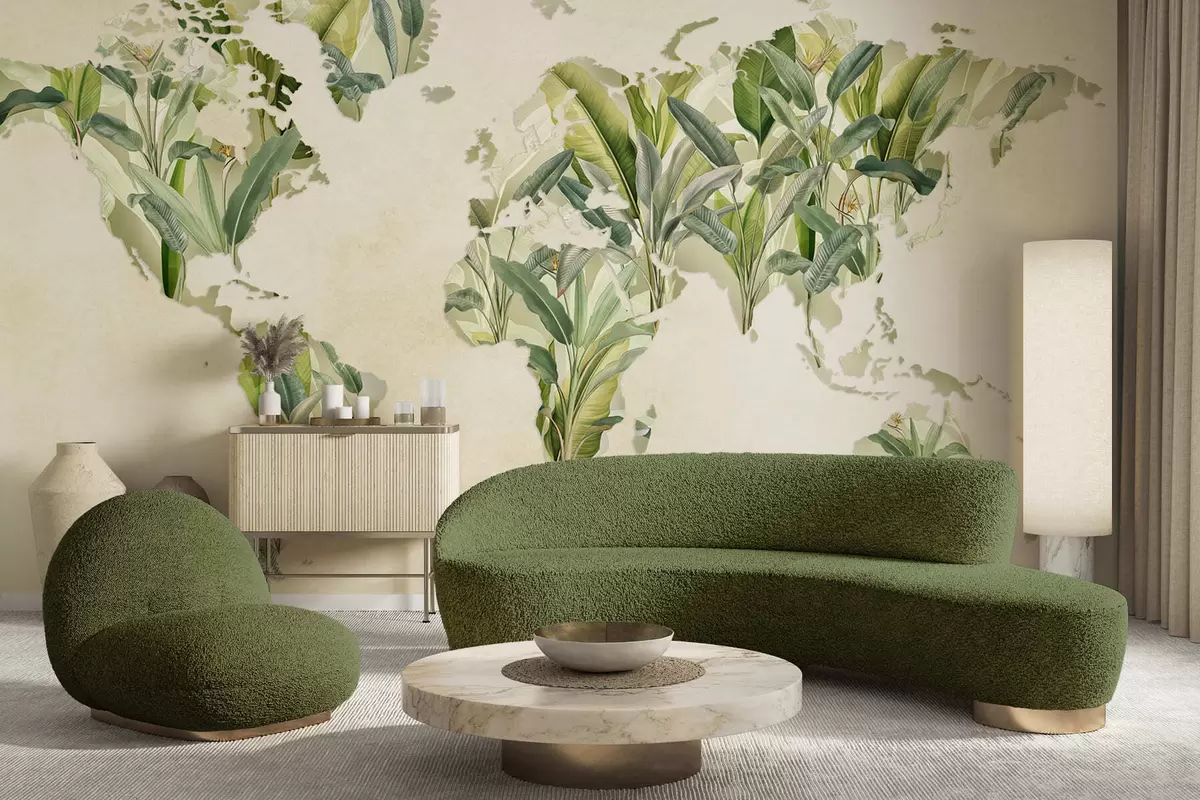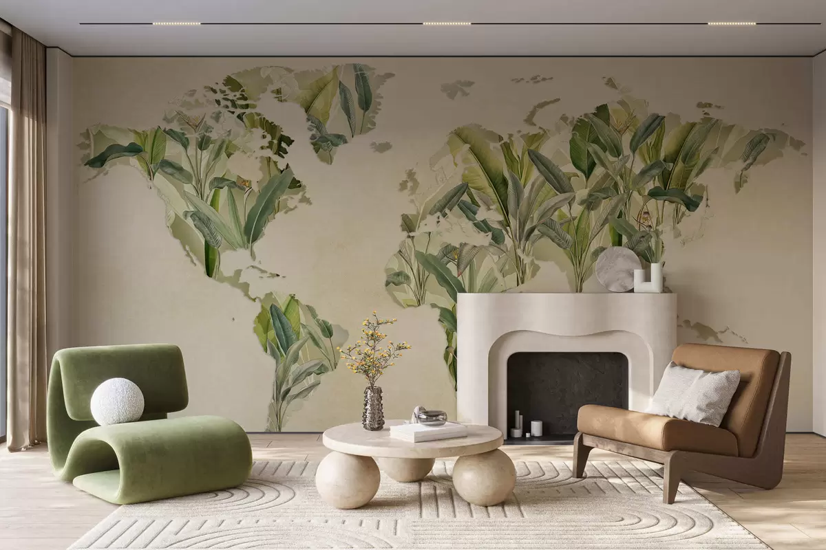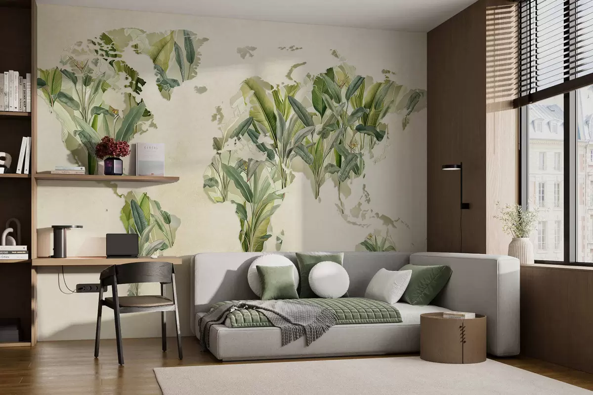 Fototapety Zelená mapa světa vyrobená z banánových listů Č. c00007