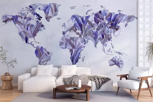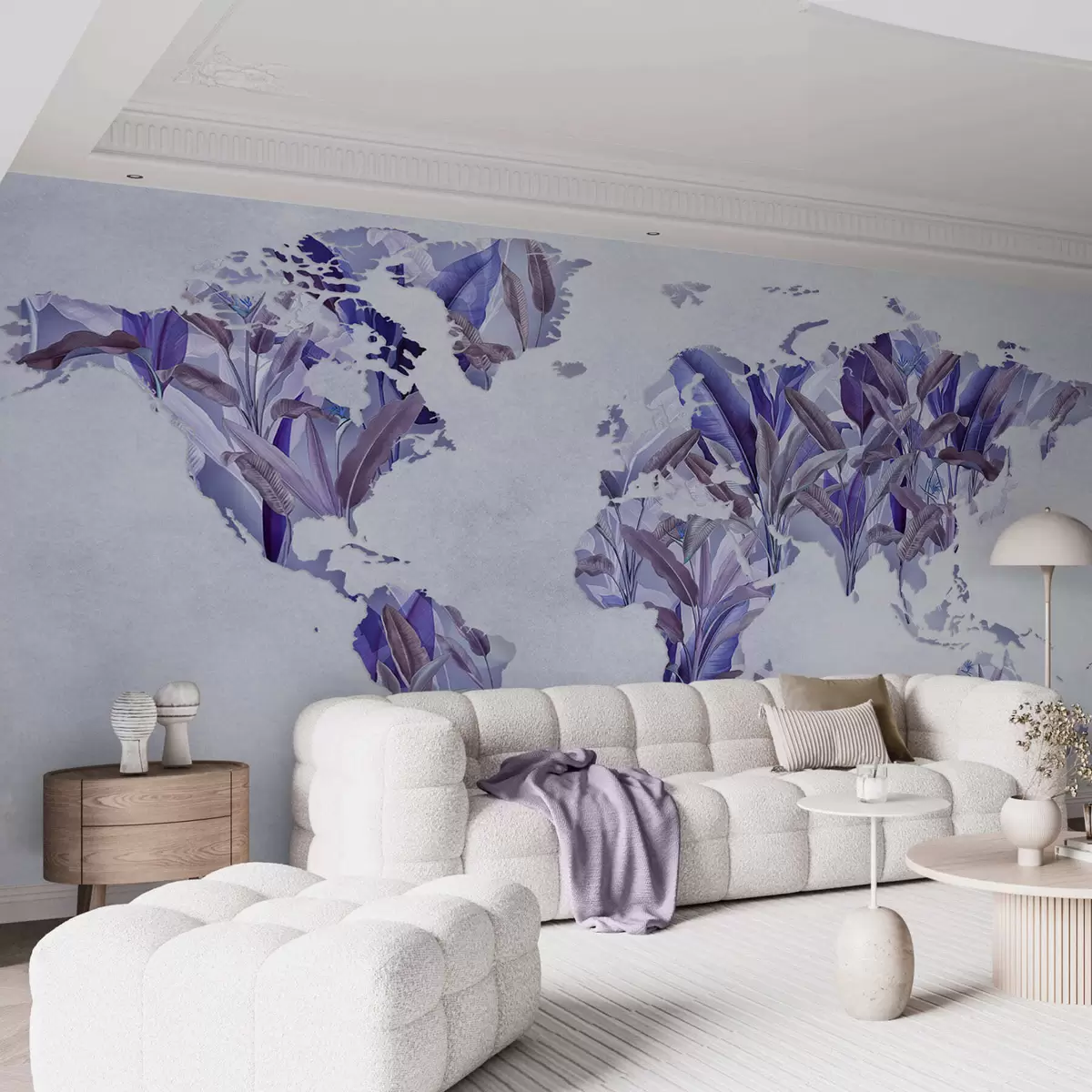 Fototapety Fialová mapa světa vyrobená z banánových listů Č. c00007v1