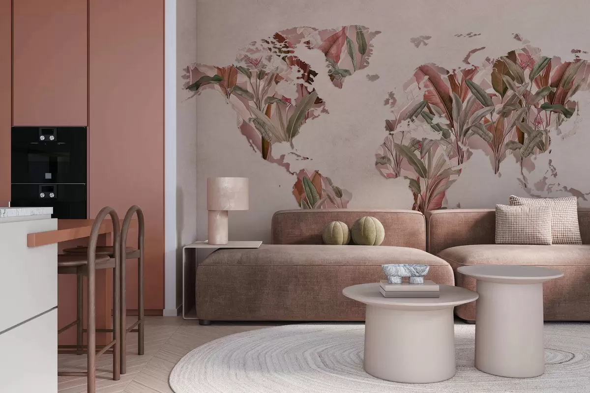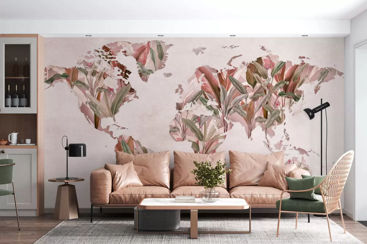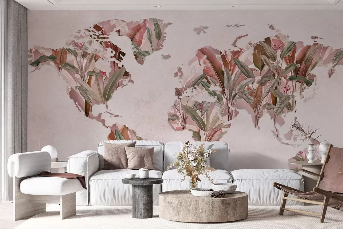 Fototapety Růžová mapa světa vyrobená z banánových listů Č. c00007v2