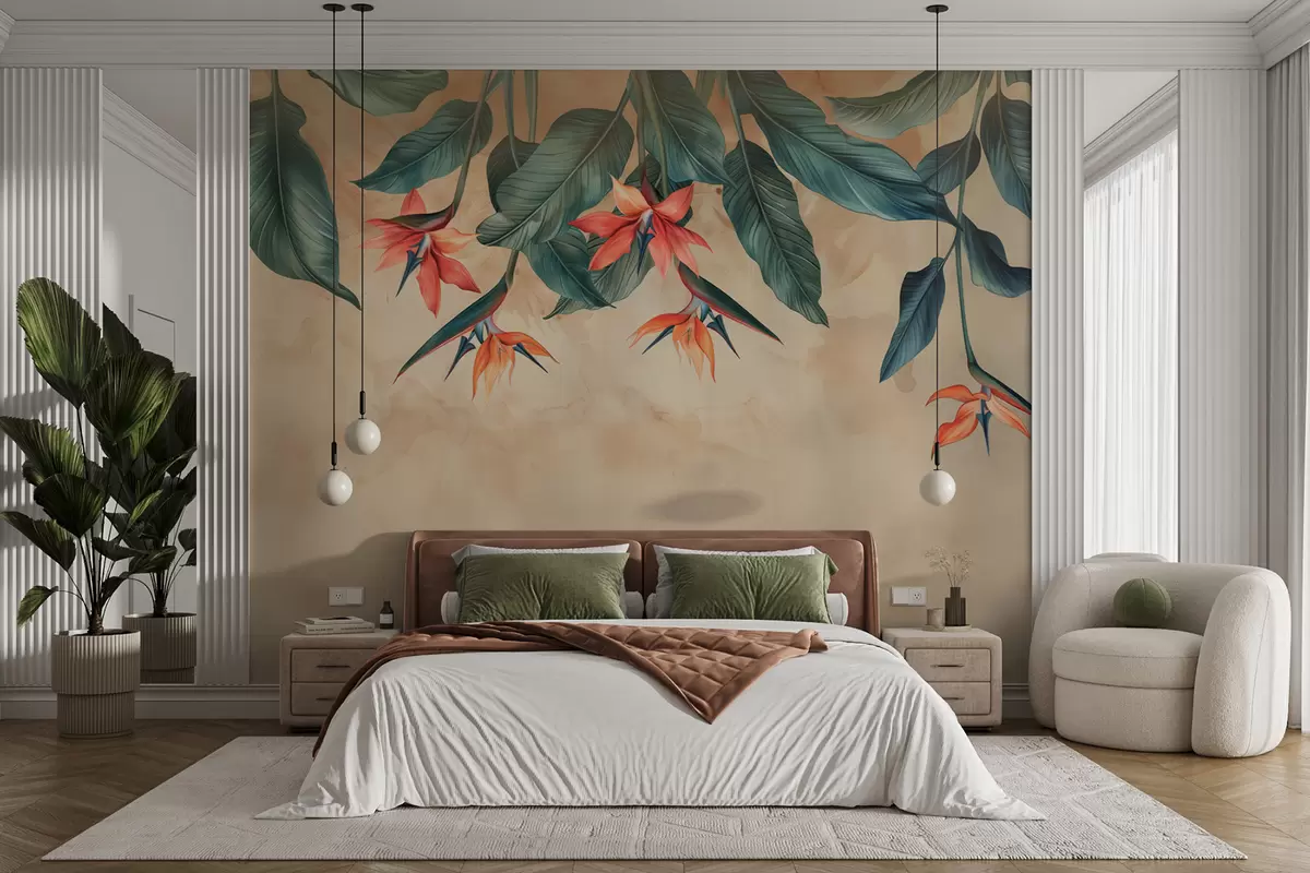 Fototapety Tropický květ na béžovém akvarelu pozadí Č. w01485