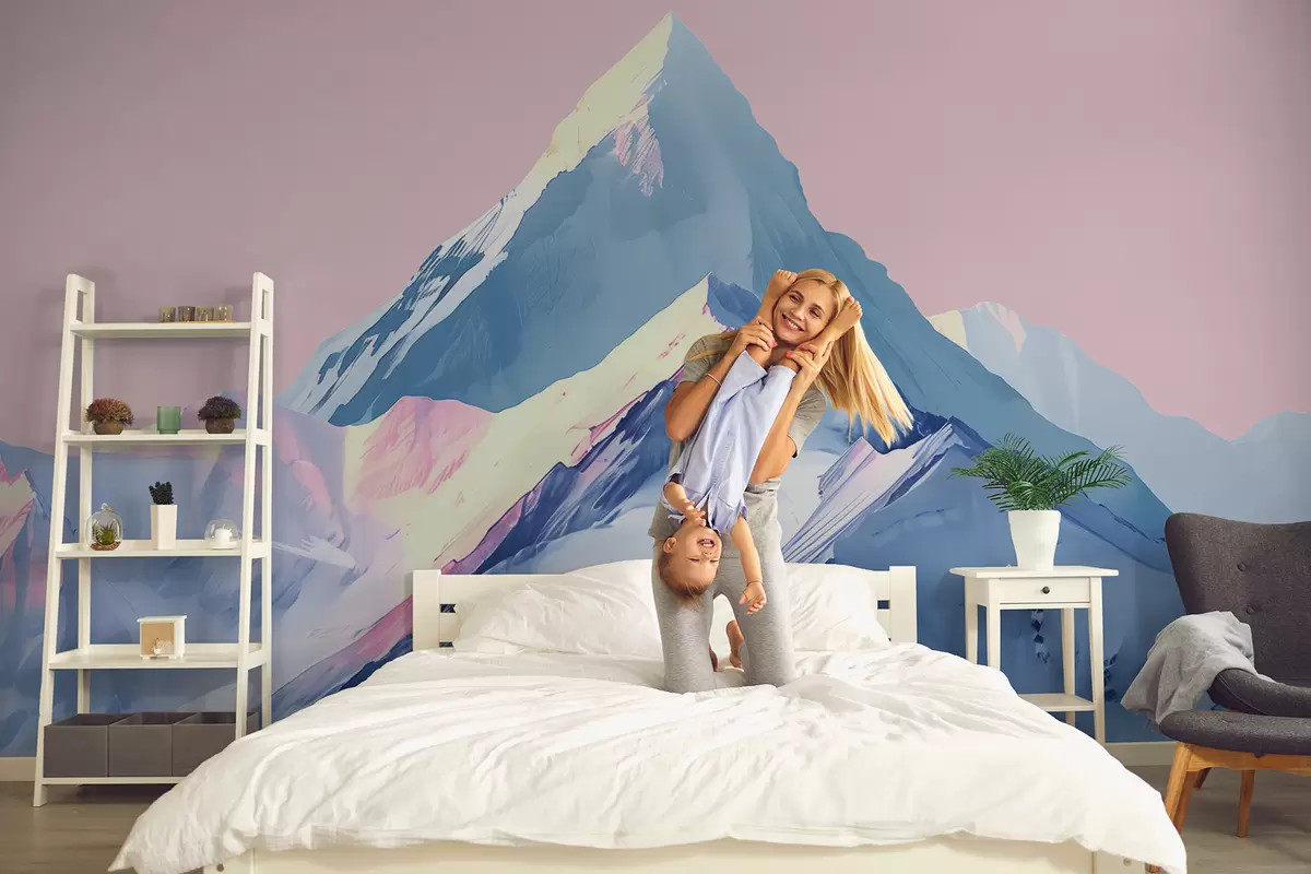 Fototapety Modré a růžové hory v nakresleném stylu Č. w01497