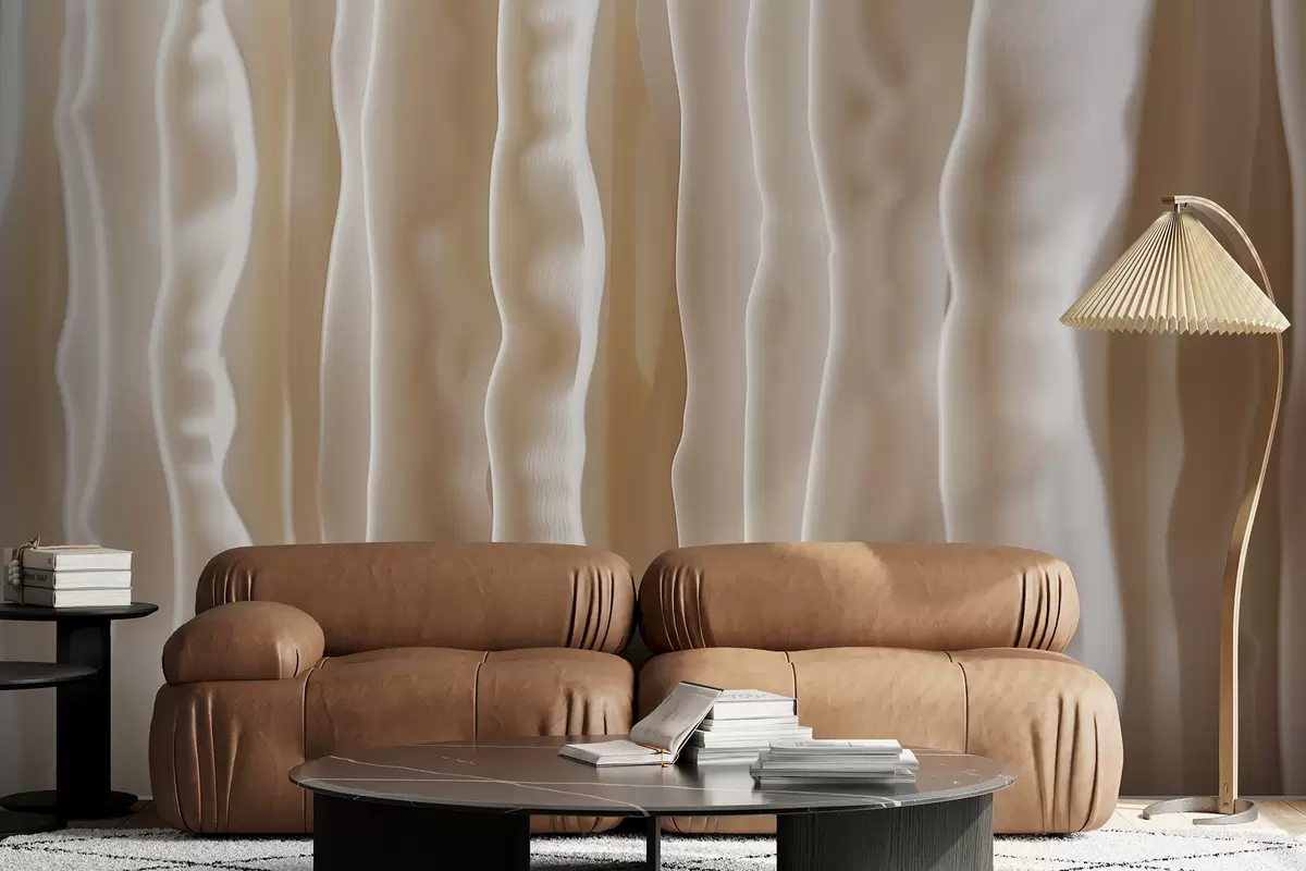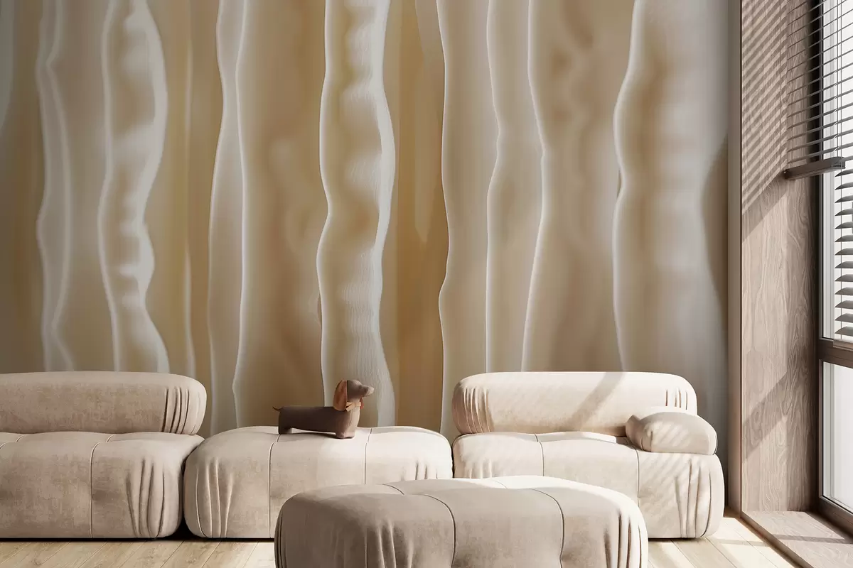 Fototapety Abstraktní výjev z organického materiálu, vyřezávané 3D svislé pruhy v béžové barvě Č. w01541