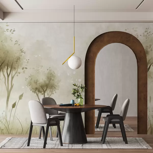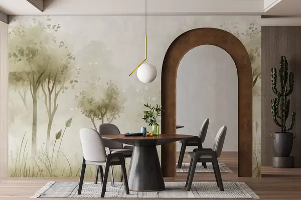Fototapety Akvarelový les s trávou a stromy, zelená barva Č. w01546v1