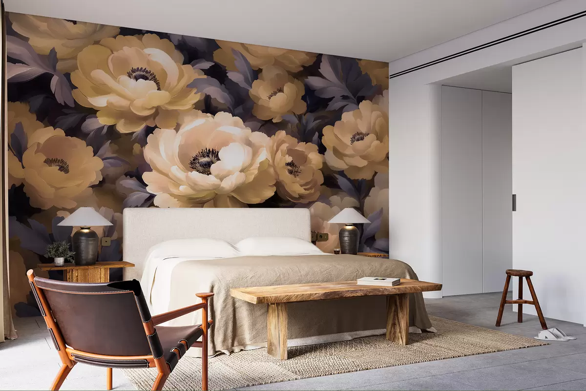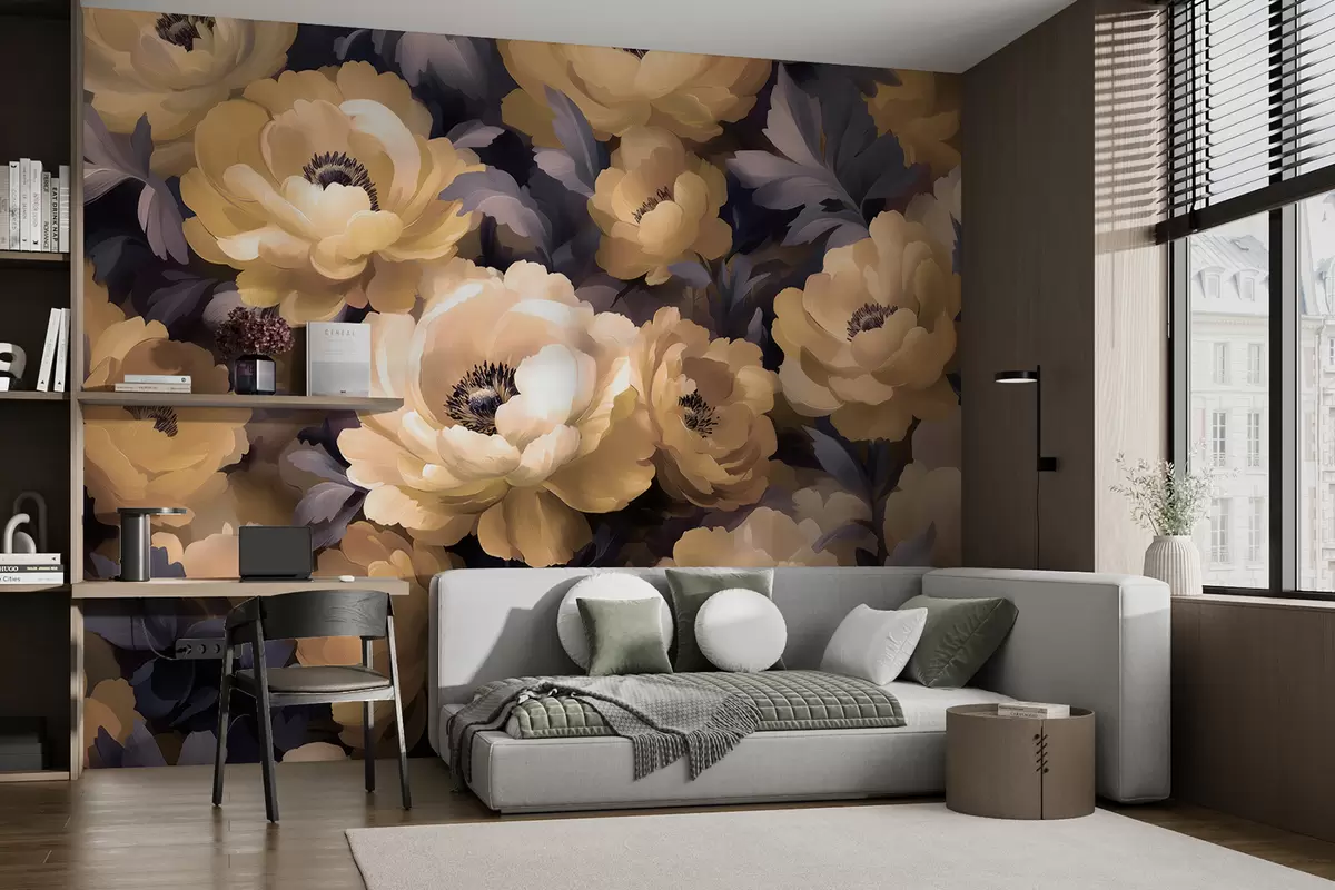 Fototapety Květinová olejomalba ve stylu béžové a fialové barvy Č. w01581