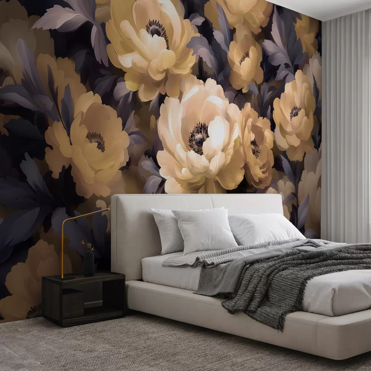 Fototapety Květinová olejomalba ve stylu béžové a fialové barvy Č. w01581