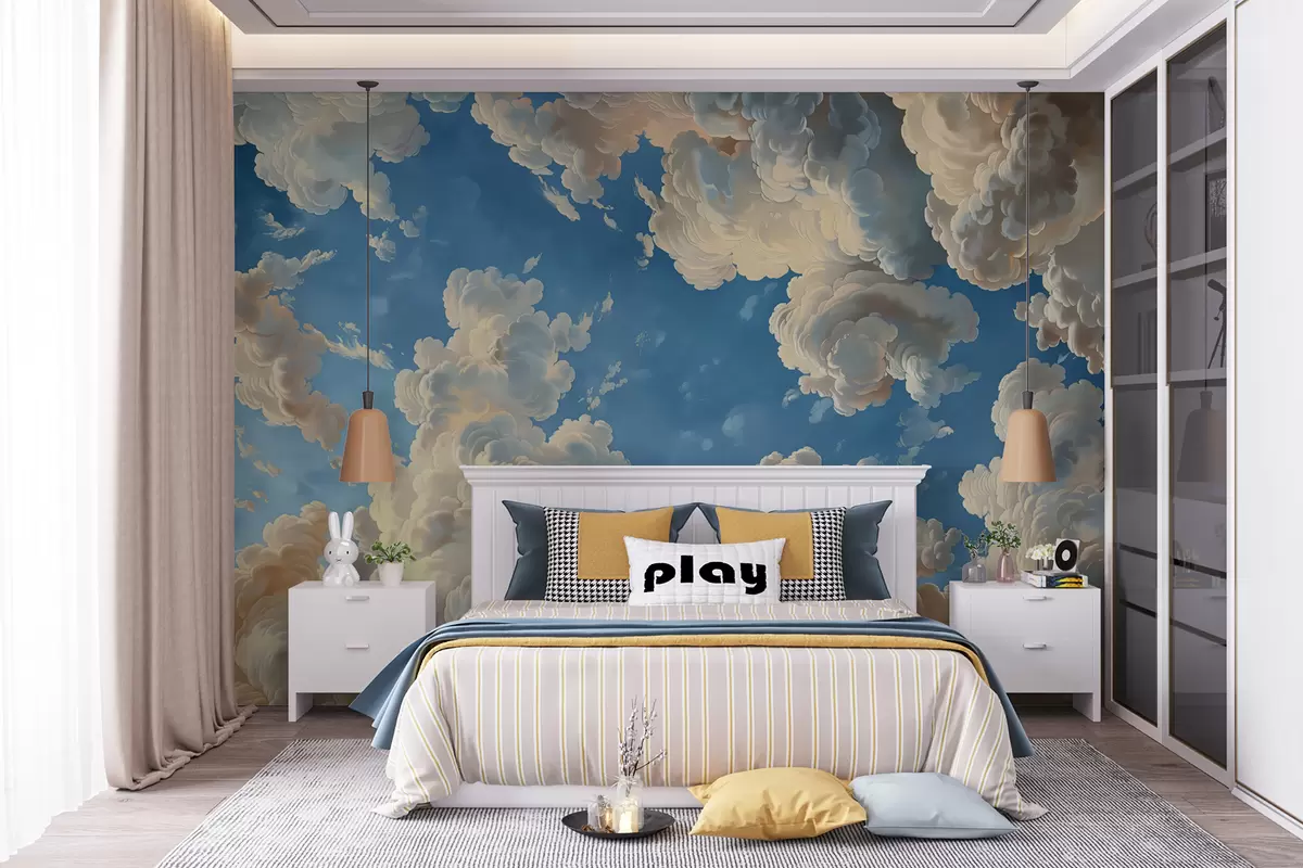 Fototapety Oblaka v teplých tónech krémové, jemné broskvové a světle barvy na pozadí hluboké, zářivě modré oblohy Č. w01583