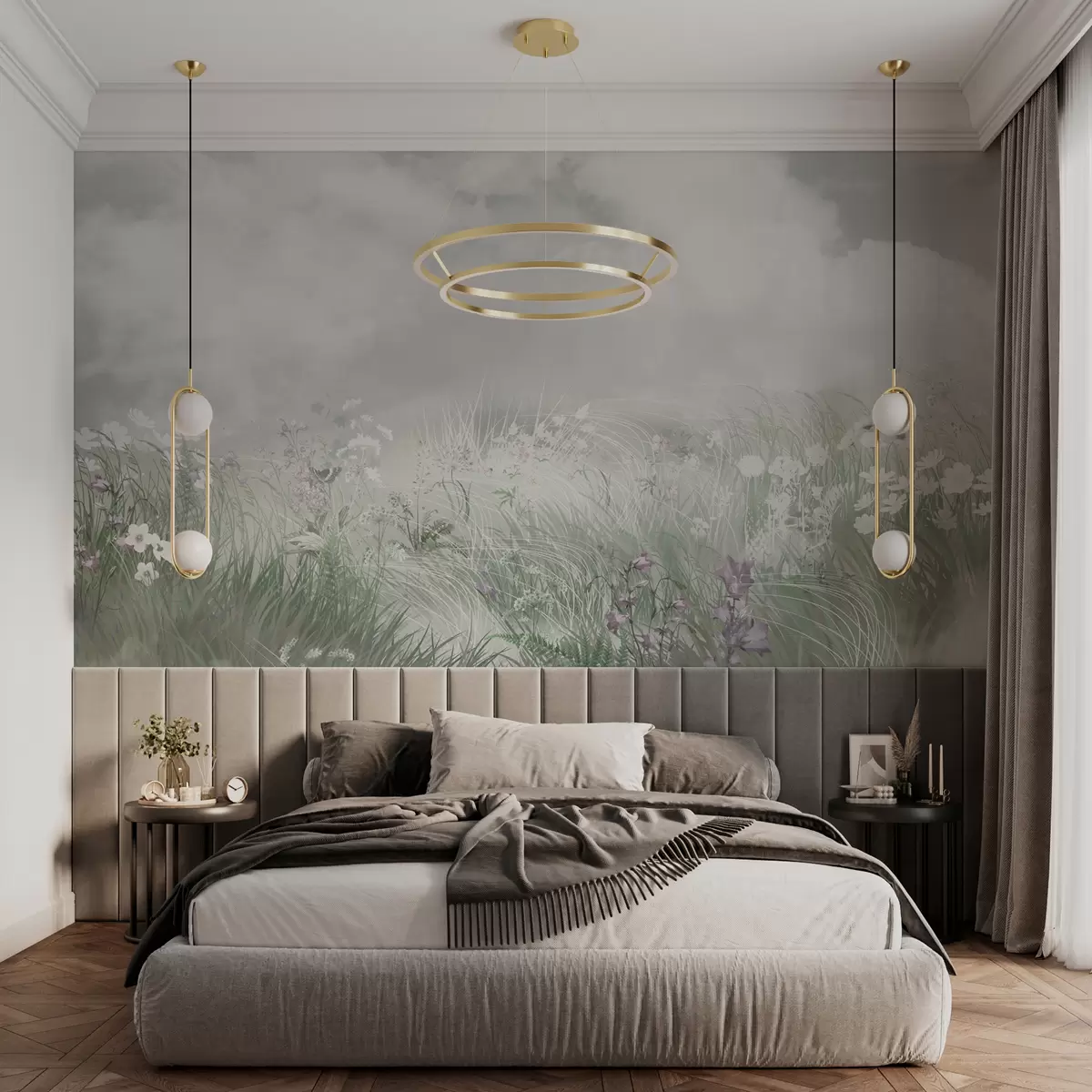 Fototapety Divoké květiny a trávy s šedou oblohou a mraky Č. w01624v3