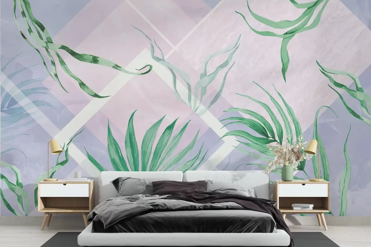 Fototapety Svěží zeleň na pozadí jemných pastelových barev Č. w01625