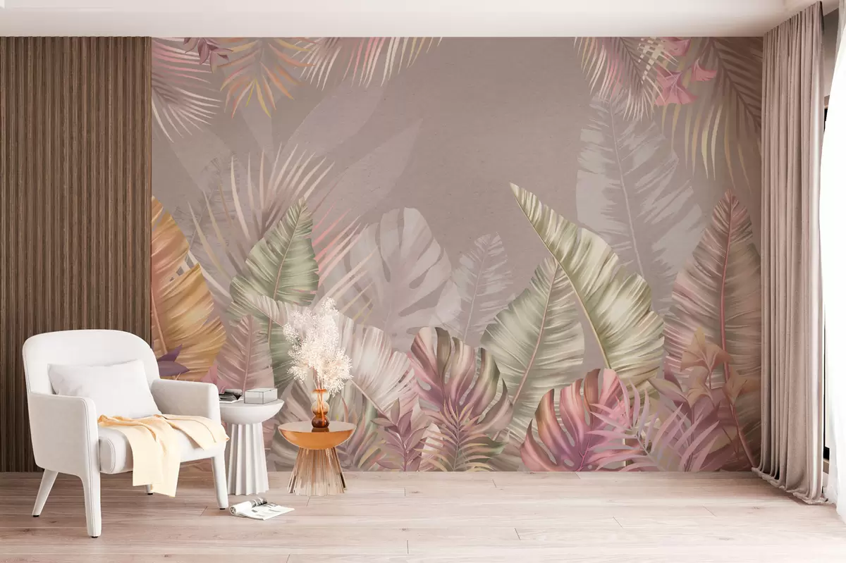 Fototapety Tropické listy v jemných pastelových odstínech Č. w01684