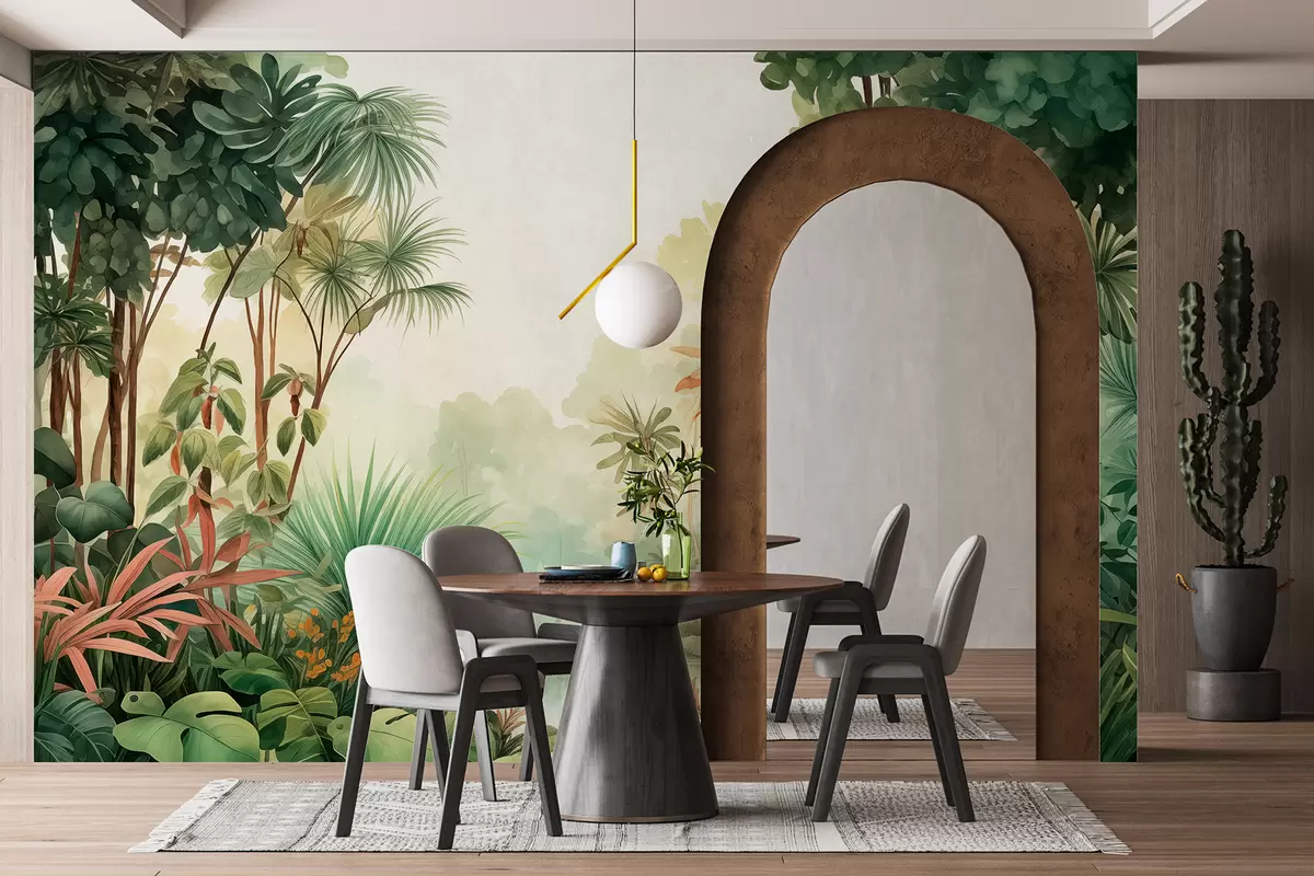 Fototapety Akvarel džungle les, palmy, jezero, zeleň Č. w01784