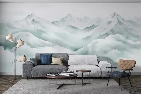 Fototapety Horská krajina, akvarel, jemné modré barvy Č. w01787v2