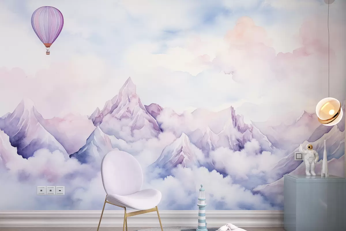 Fototapety Vzdušný balón v horách, akvarel, jemné éterické barvy Č. w01789