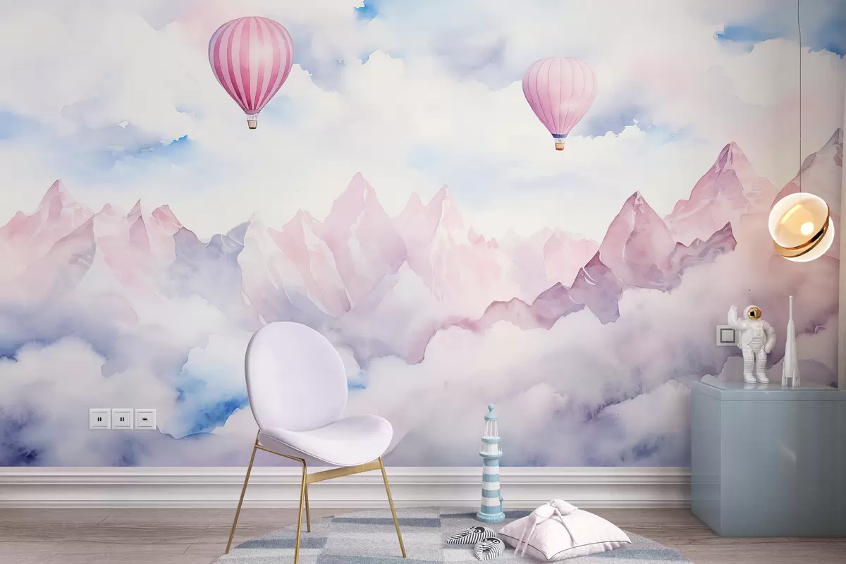 Fototapety Krásná horská krajina se vzduchovými balóny, akvarel Č. w01792
