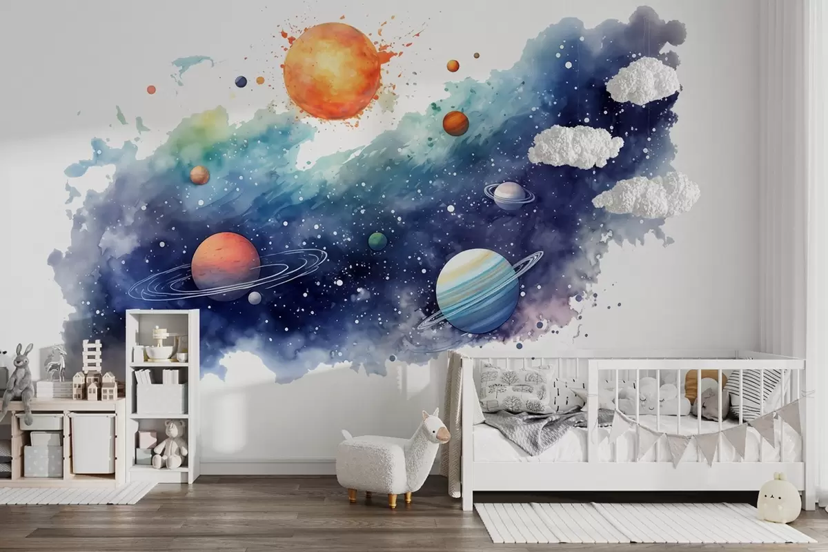 Fototapety Akvarel vesmír, planety, slunce, hvězdy Č. w01803