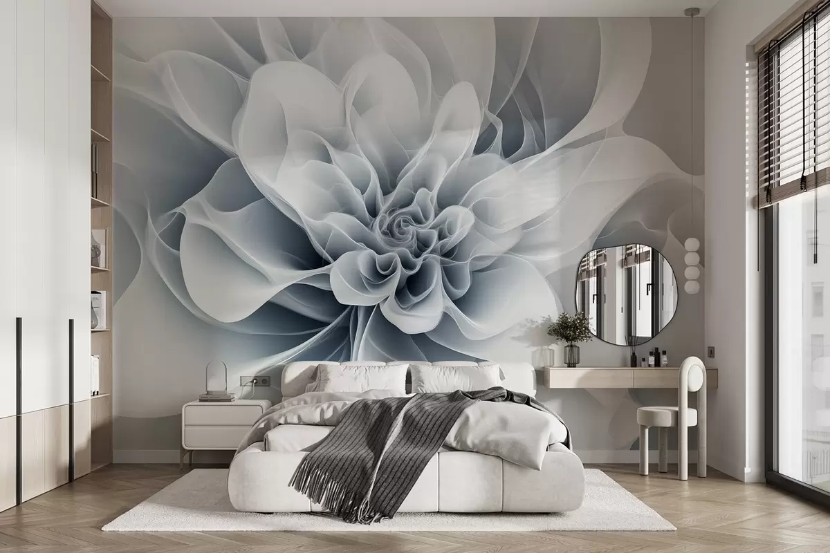Fototapety Elegantní abstraktní obraz květiny s hladkými liniemi v modré barvě Č. w01853
