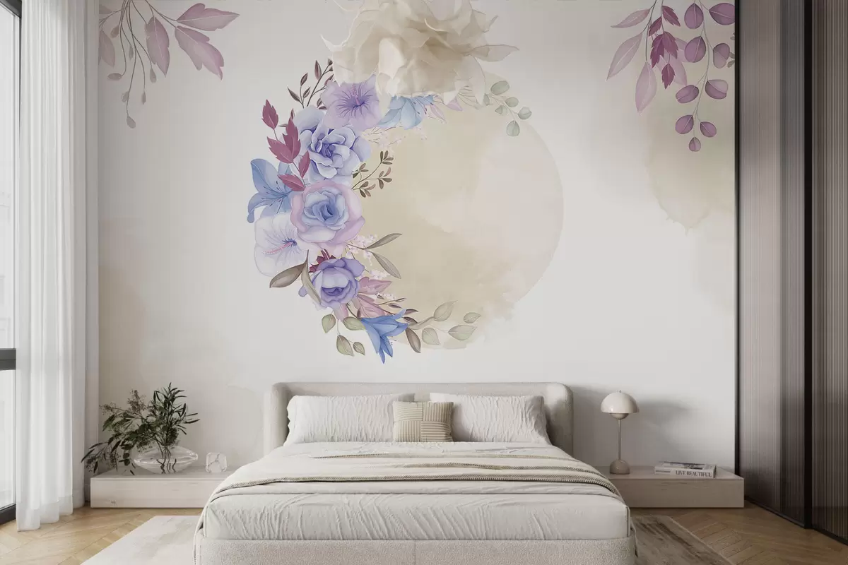 Fototapety Jemné květy ve tvaru půlměsíce v akvarelovém stylu s béžovými skvrnami Č. w01874