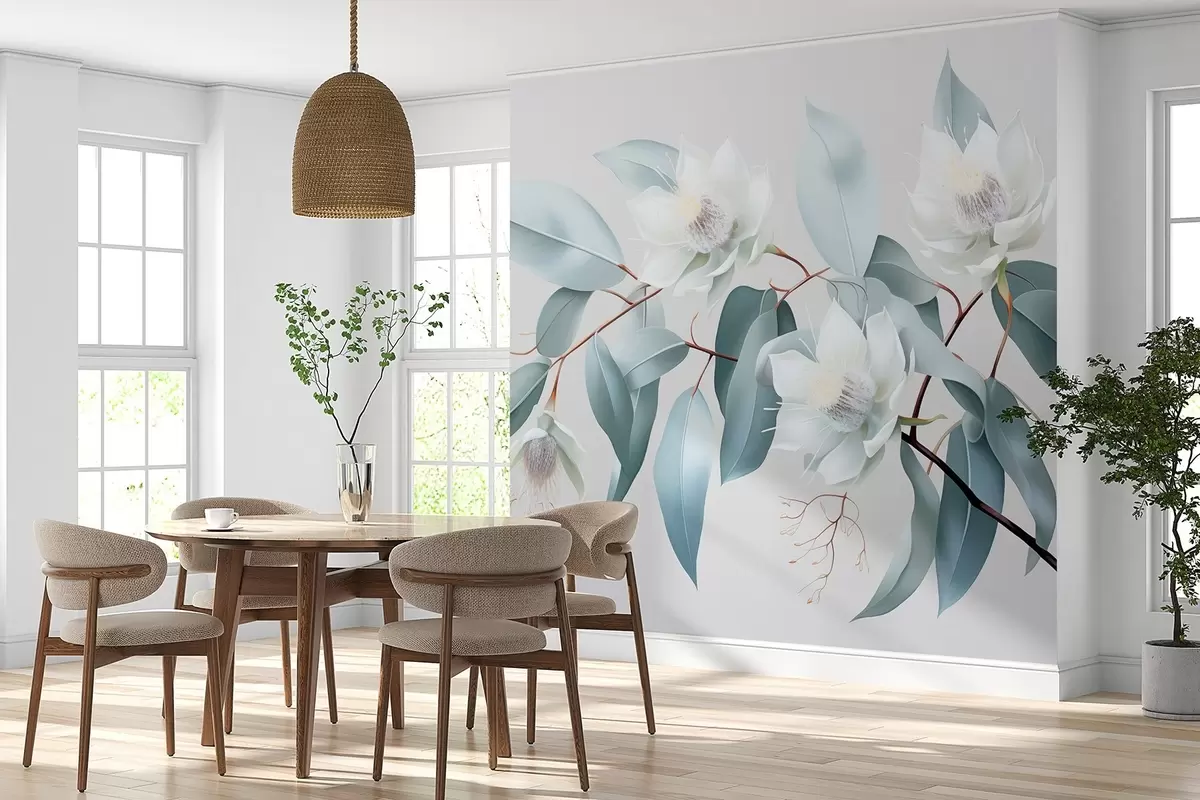 Fototapety Květy jasmínu na větvi, akryl, jemné šedé barvy Č. w01885
