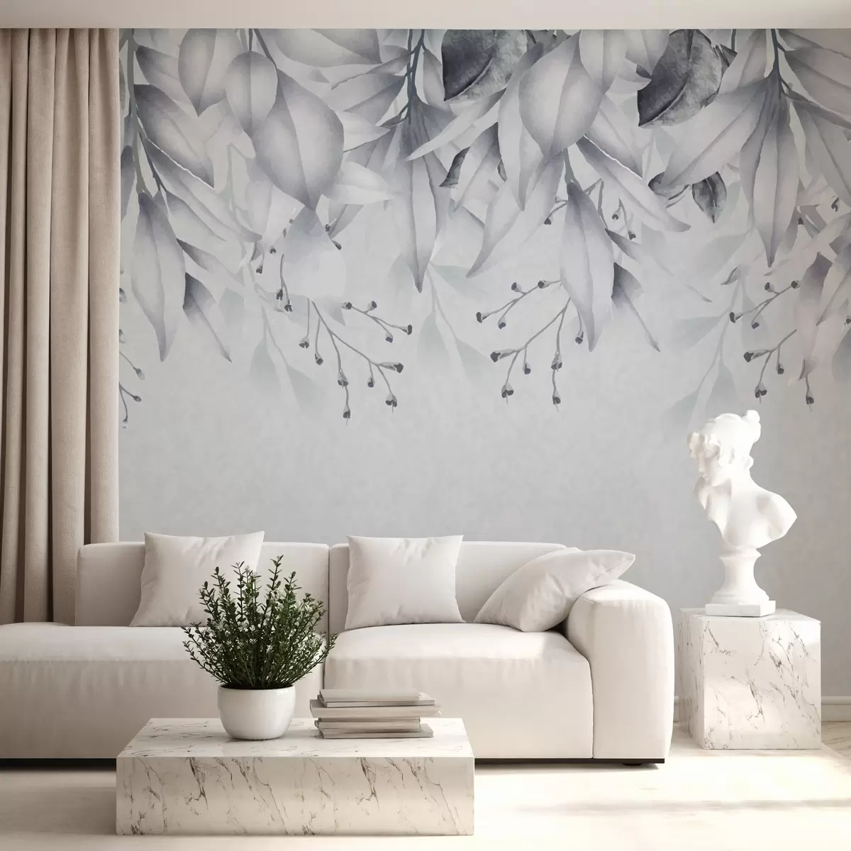 Fototapety Modré listy a větvičky visí shora dolů Č. w01927v2