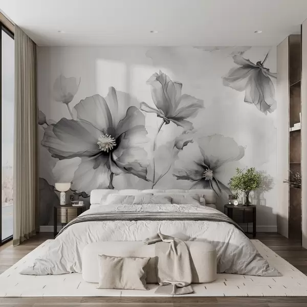 Fototapety Vzdušné průsvitné šedé květy rozplývající se v ranním světle Č. w01938