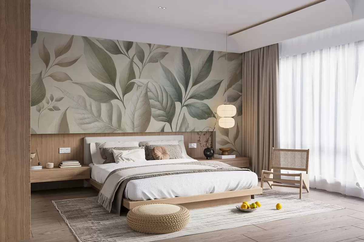 Fototapet Nádherný vzor s velkými listy v elegantních krémových a béžových odstínech w01959