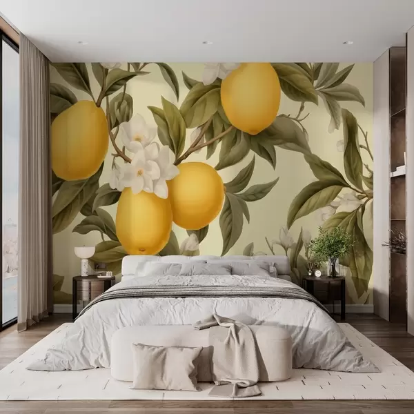 Fototapety Šťavnaté citrony s bílými květy na větvích Č. w01977