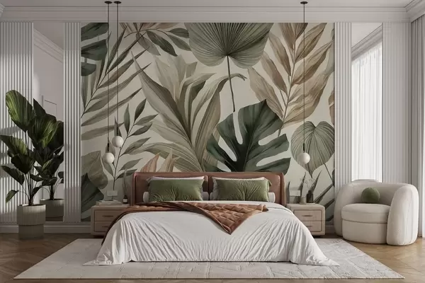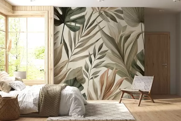 Fototapety Velké tropické listy ve střídmých jemných pastelových odstínech Č. w02082