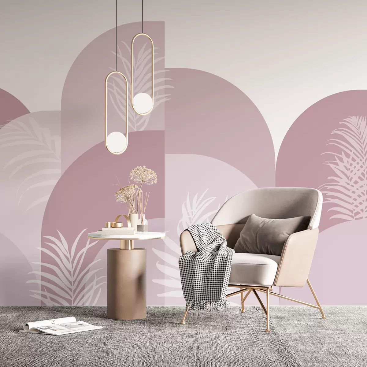Fototapety Módní oblouky s tropickými listy růžové barvy Č. w02101v4