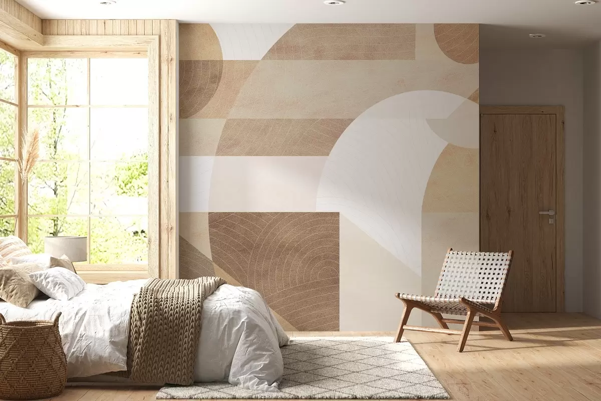 Fototapety Moderní geometrie s abstraktními tvary, texturované detaily v béžových a hnědých tónech Č. w02140