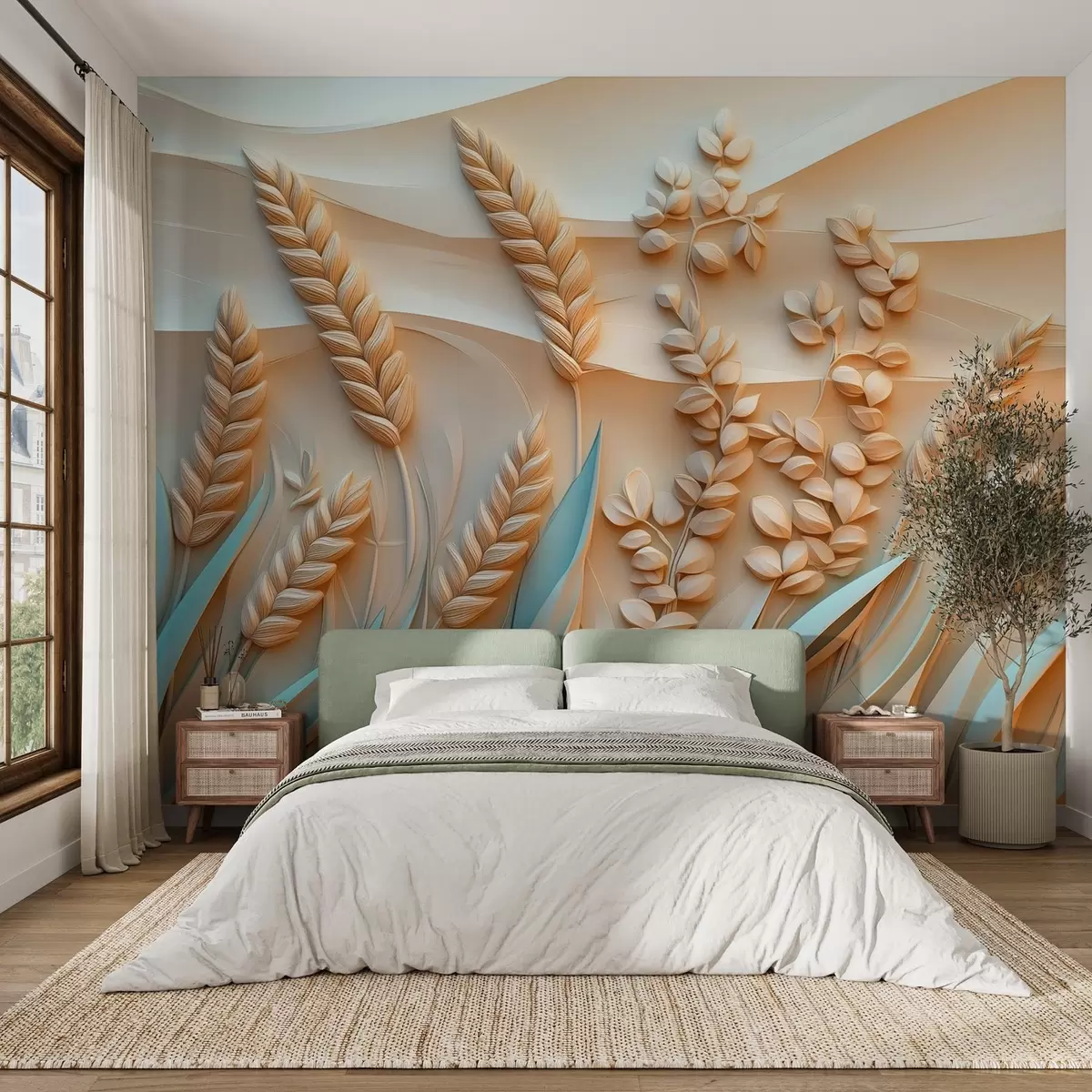 Fototapety Pšeničný porost v reliéfním stylu v jemných barvách Č. w02147