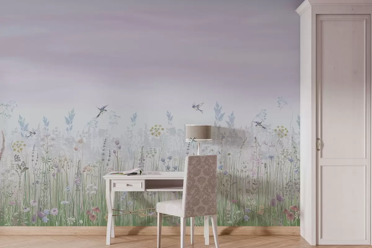 Fototapety Vintage divoké květiny a gradientní obloha Č. w02192v1