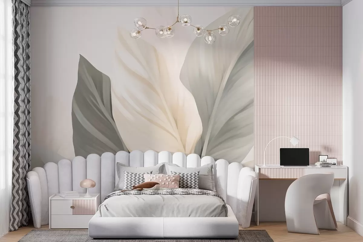Fototapety Béžové a šedé listy na světlém pozadí Č. w02217