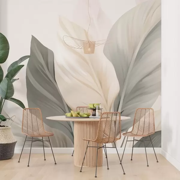 Fototapet Béžové a šedé listy na světlém pozadí w02217