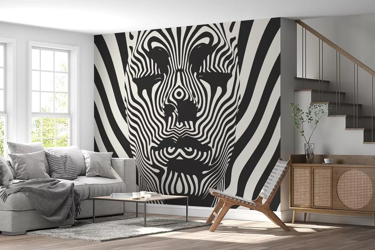 Fototapety Mřížka ve stylu op artu s abstraktní tváří, zvlněné linie na světlém pozadí. Č. w02285