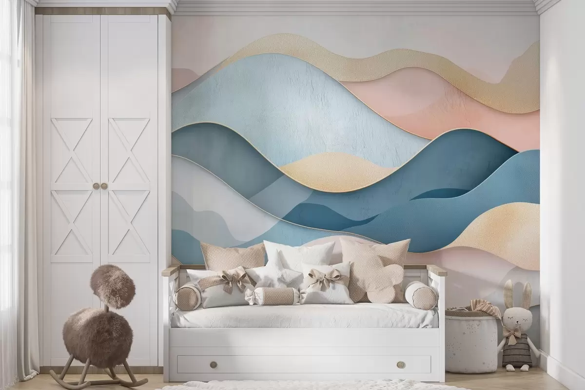 Fototapety Zvlněný vzor ve stylu art deco v růžové a modré barvě Č. w02290