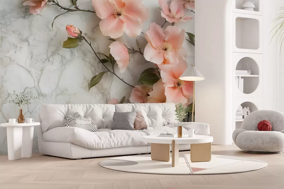 Fototapety Jemné květiny na pozadí imitace mramoru Č. w02291