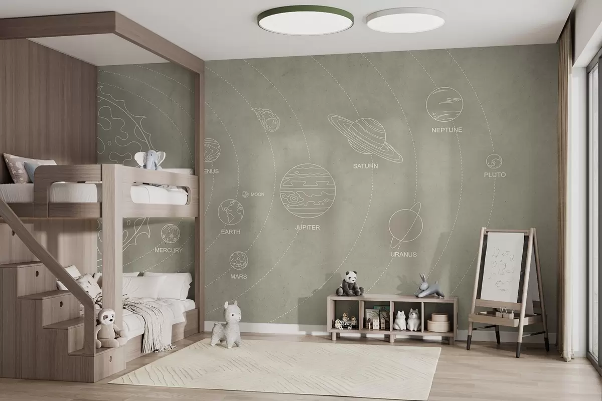 Fototapety Sluneční soustava v minimalistickém stylu na chladném béžovém texturovaném pozadí Č. w02344